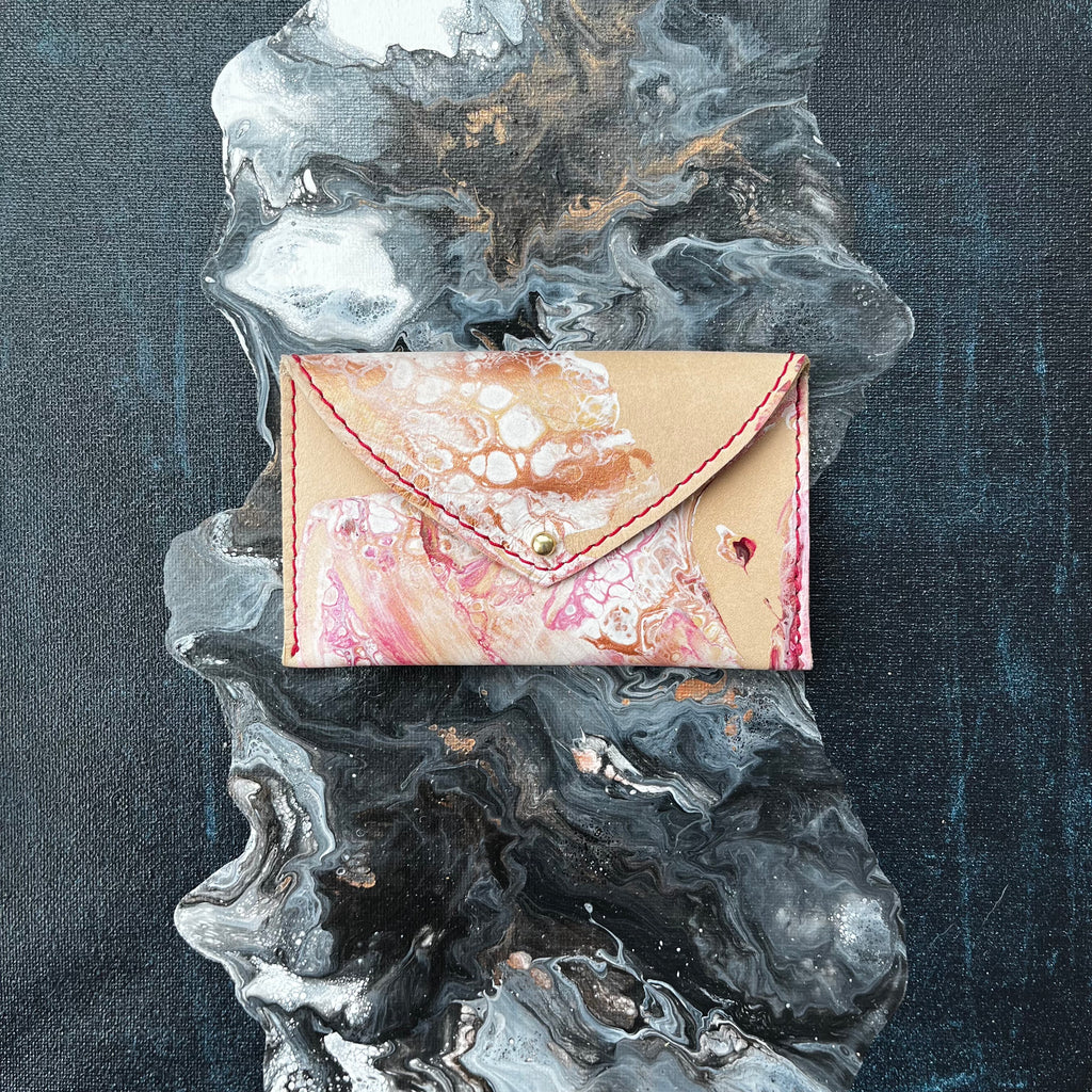 Envelope Wallet Leather Deep Cranberry White, Gold Swirl