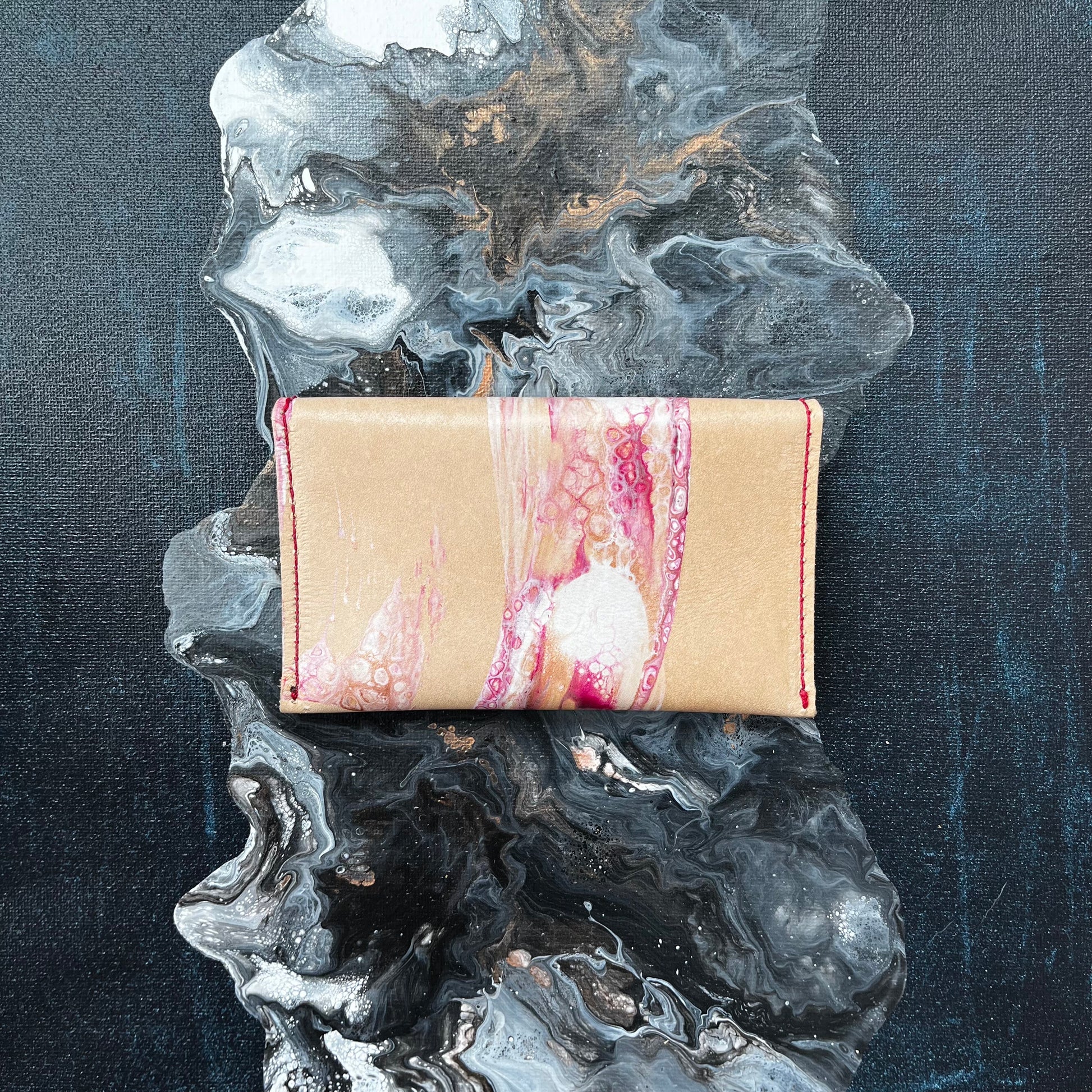 For the Cherry blossom series, my inspiration comes from the beautiful delicate papery rose petals that welcome Spring.I paint each one by hand so every wallet has original artwork and is one-of-a-kind.