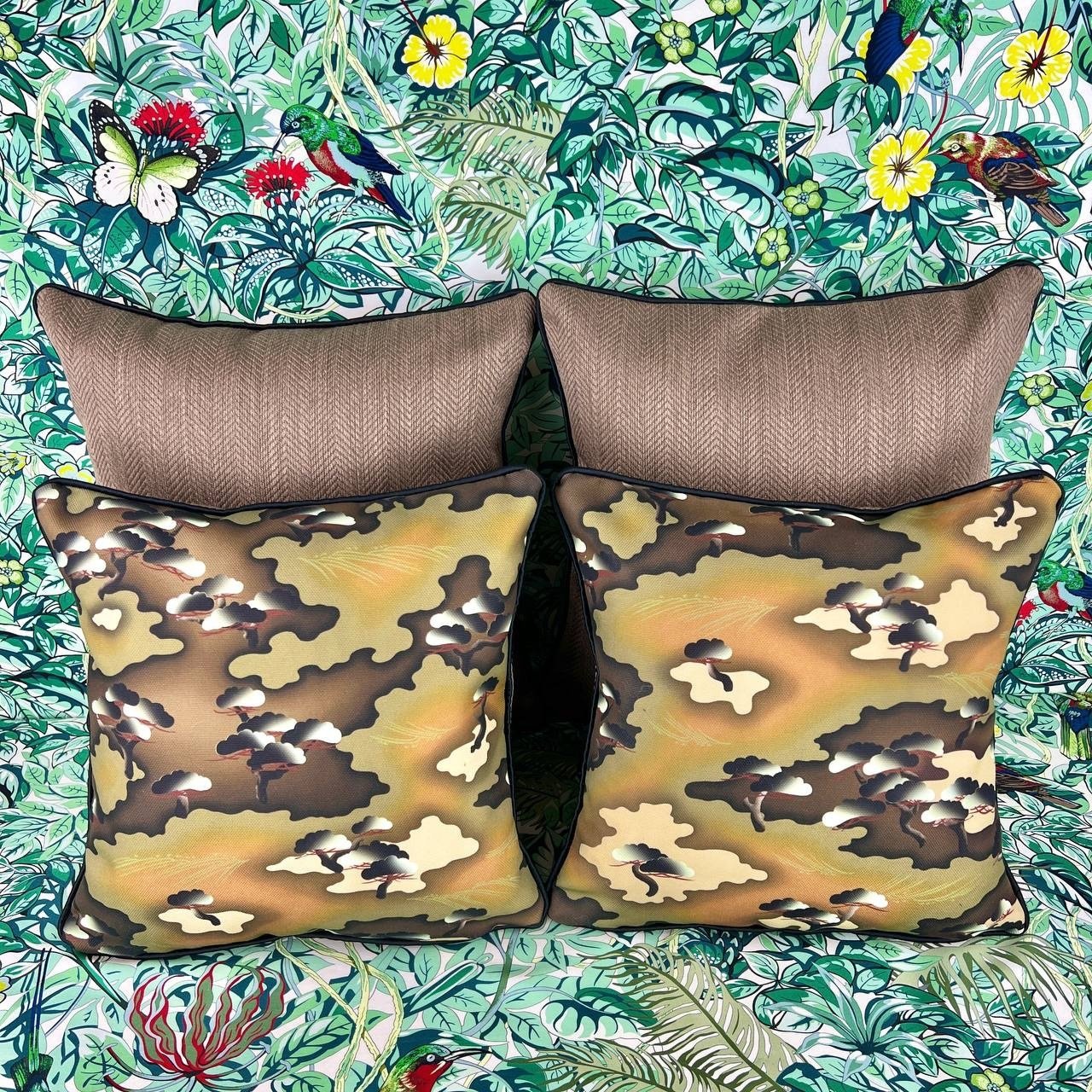 Set of 2 camouflage pattern & 2 herringbone pattern by Jean-Paul Gaultier decorative shams