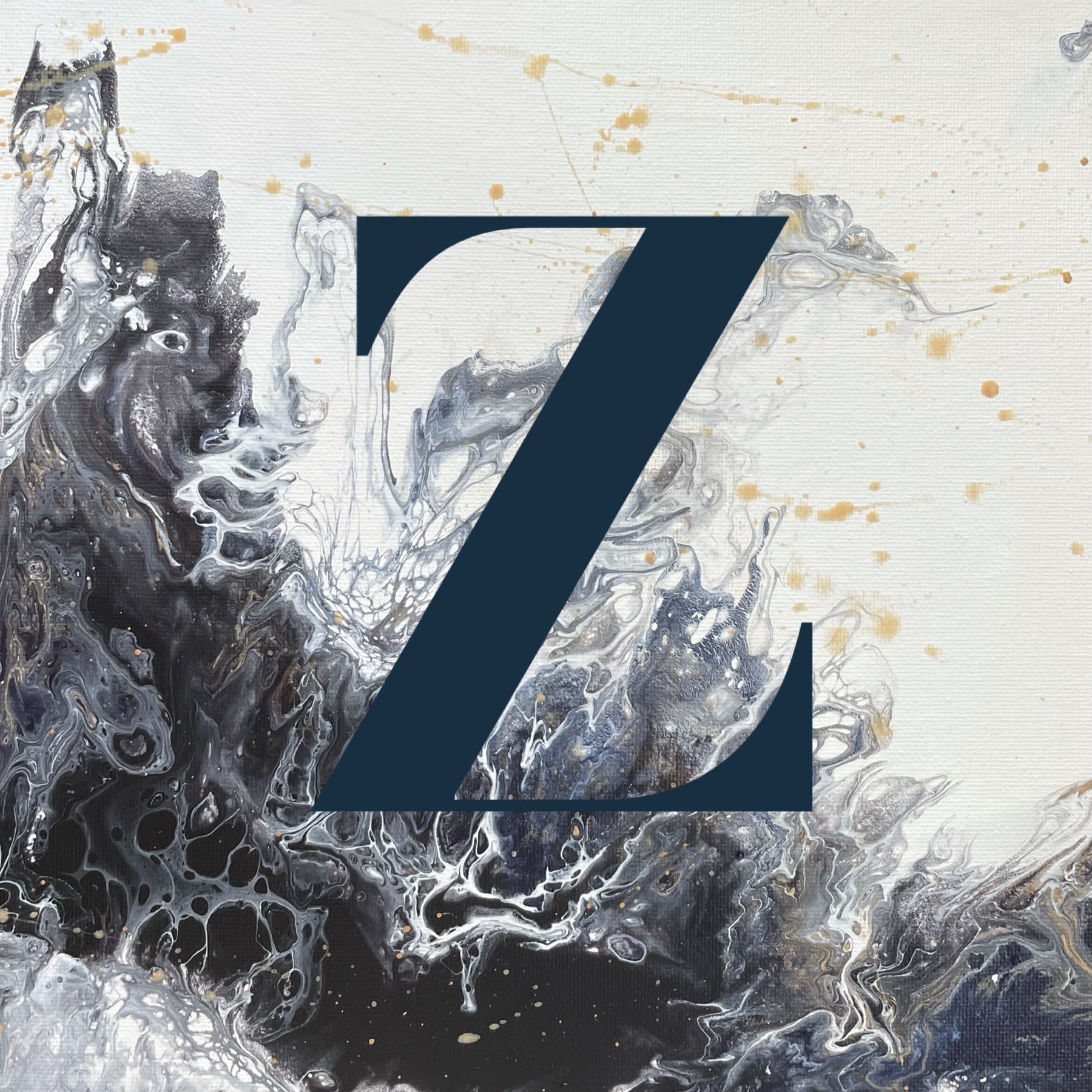 TWILLY, elongated shape, pointy ends, finished with an initial. Perfect little fashion accessory to wrap around the handle of your handbag, tie it around the neck Parisian style or just make a pretty bow. Whimsical art design in dark blue.
